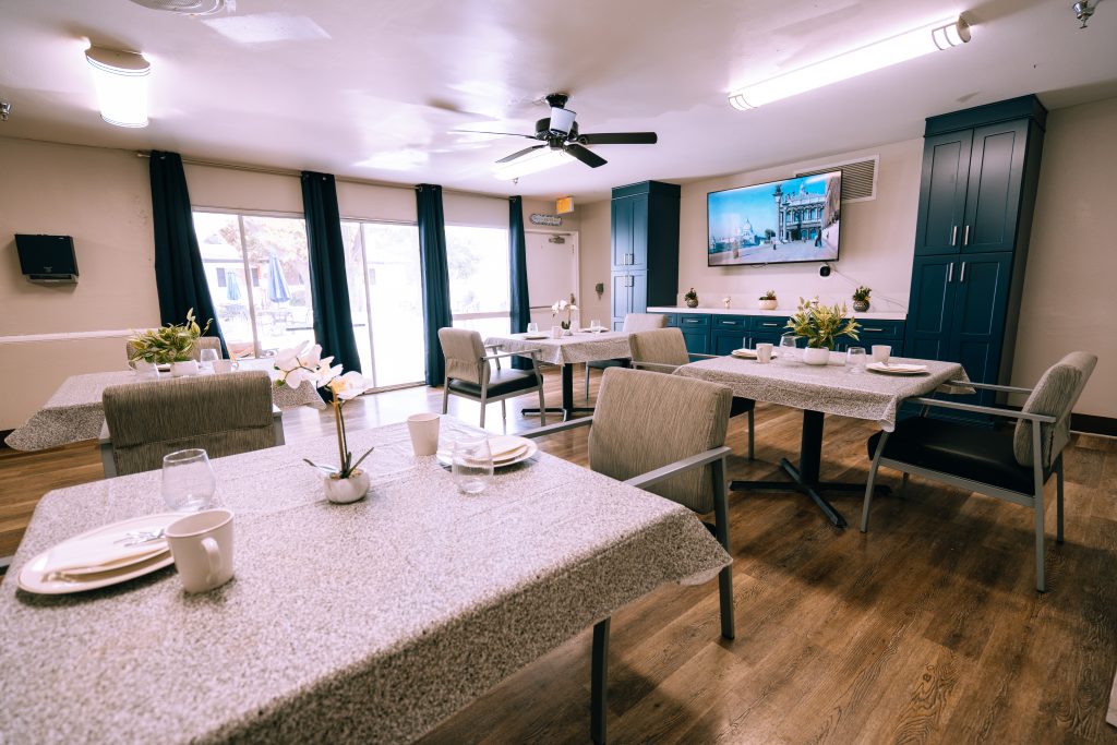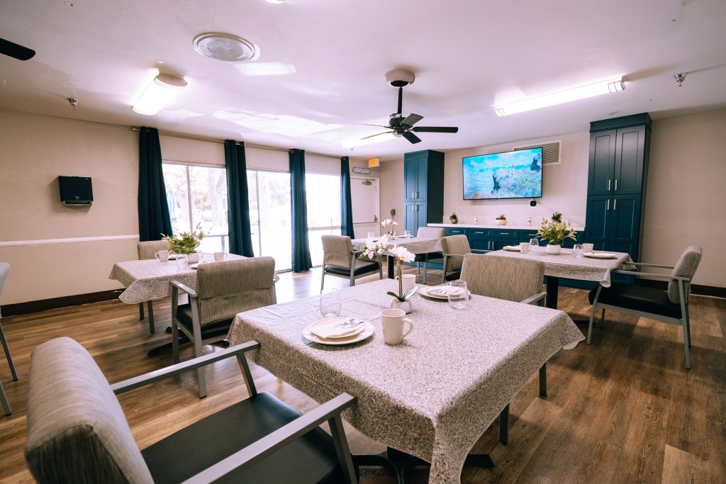 Residents enjoy nutritious, chef-prepared meals each day in our welcoming dining spaces. Designed with comfort and community in mind, our restaurant-style setting encourages social interaction and makes mealtimes a pleasant and engaging experience.